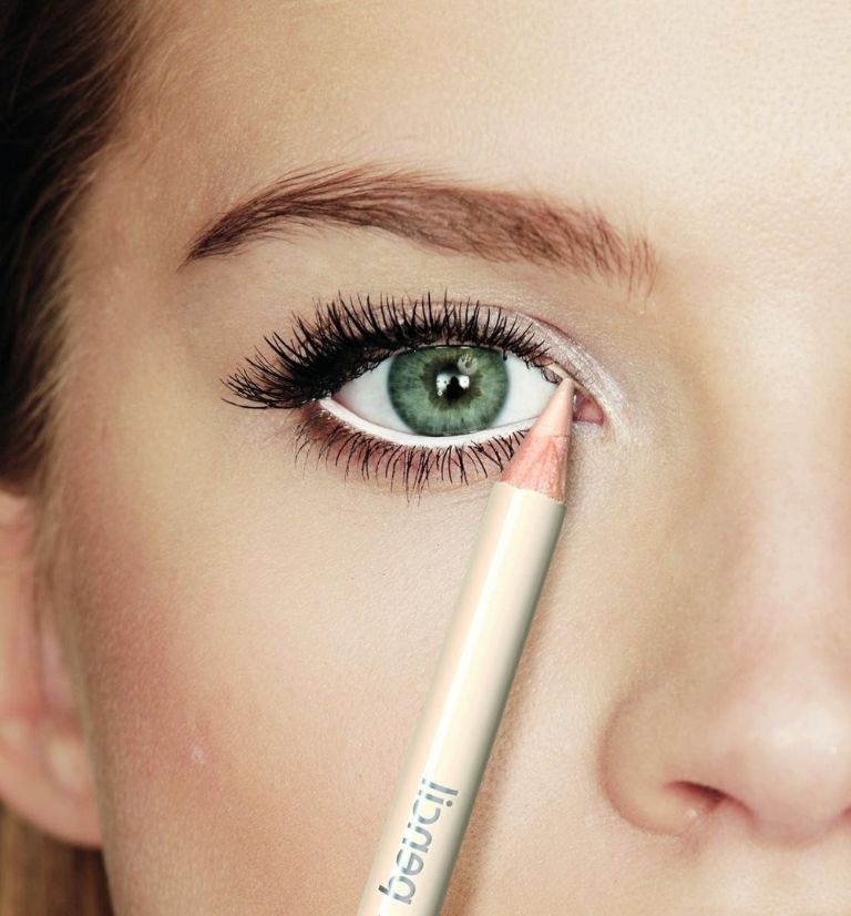 Los lápices de colores neutro o blanco crean la ilusión óptica de que los ojos se ven más abiertos, además brindan mayor luz a la mirada.