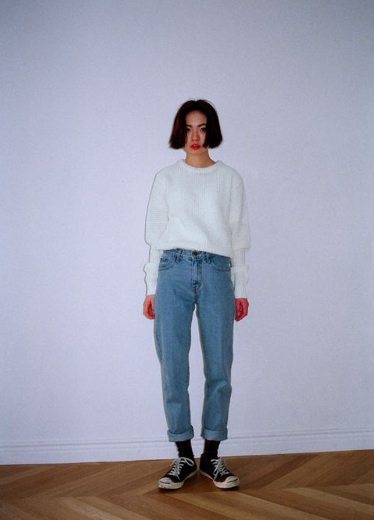 Una de las mejores maneras de hacer que los jeans normcore sean toda una personalidad en ti es colocando detalles en el resto del atuendo, como por ejemplo optar por usar calcetas largas, esto es ideal para cuando los pantalones son de tiro algo y terminan un poco más arriba del tobillo.